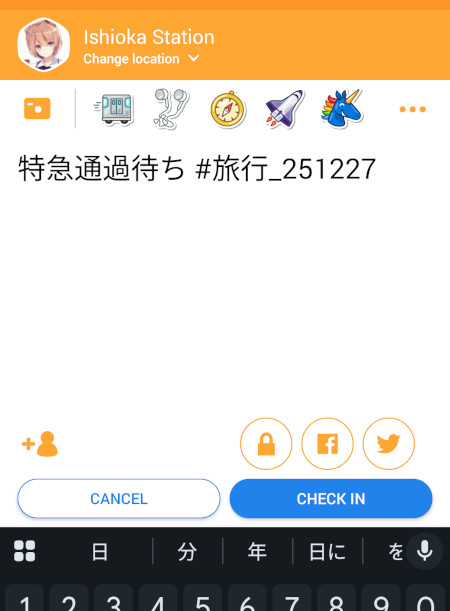 しかし、チェックインの度に旅行_YYMMDDというハッシュタグを手入力するのは相当な手間です。PCでも結構面倒なので、これはスマホのユーザー辞書に登録してしまいます。旅行を始める際に更新することさえ忘れなければ自分で設定したショートカットを入力すればハッシュタグを何も考えずに入力できるということです。